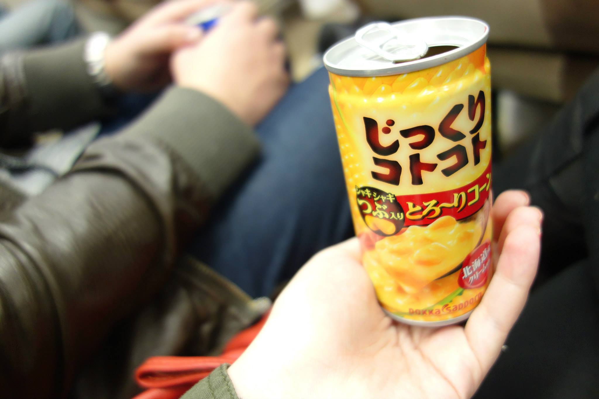 Absolute best vending machines around – hot creamed corn and (not pictured) hot milk tea